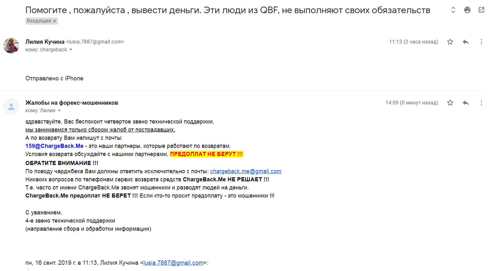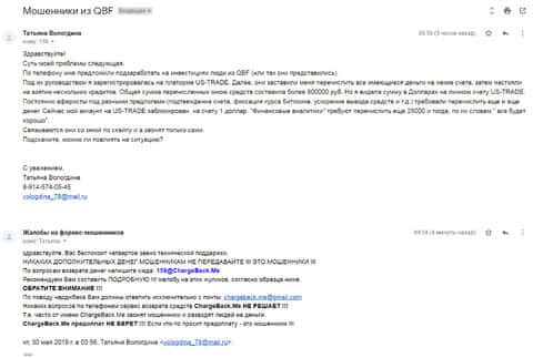 Жалоба в том числе и на аферистов QBFAM
