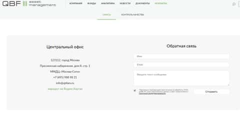 Под контакты аферисты КьюБиЭф Ассет Менеджмент отвели отдельный раздел сайта, в котором шулера КьюБиЭф Ассет Менеджмент разметили информацию об офисах, которые есть у шулеров QBFAM. Ниже перечислим указанные жуликами QBFAM контакты офисов лохотрона: