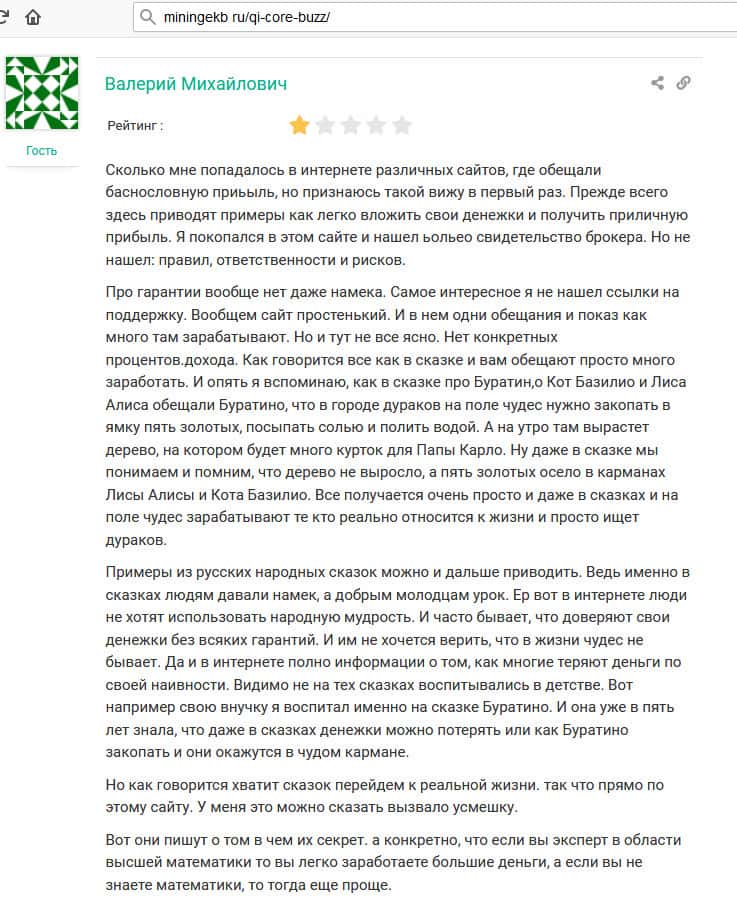 Что думает автор статьи о мошенническом проекте QI-Core?