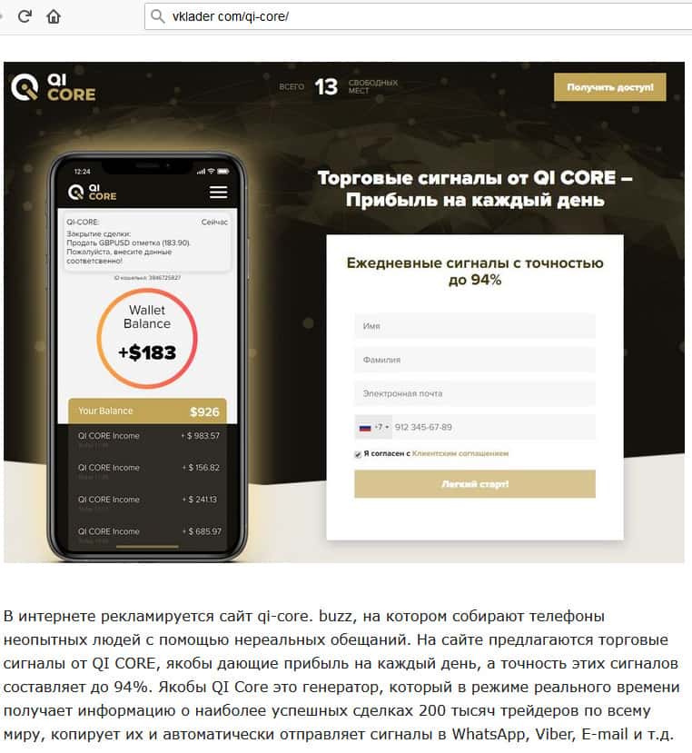 - Аферисты QI-Core заманивают своих клиентов в руки черного брокера