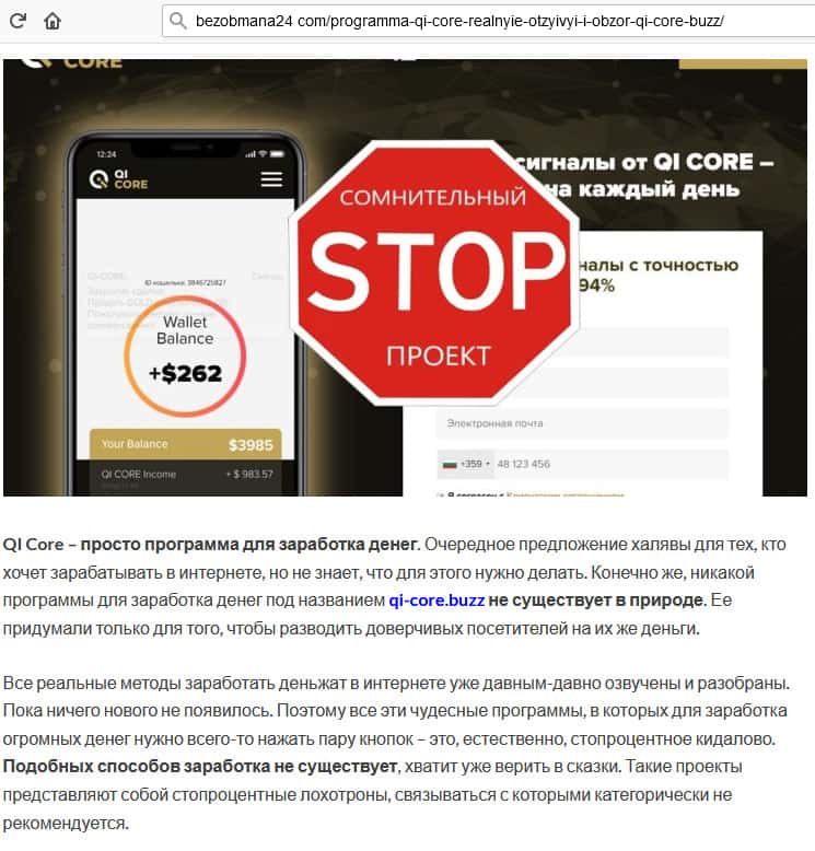 Программа для заработка QI-Core - это обычный, мошеннический проект