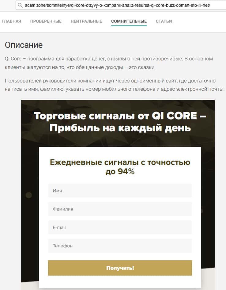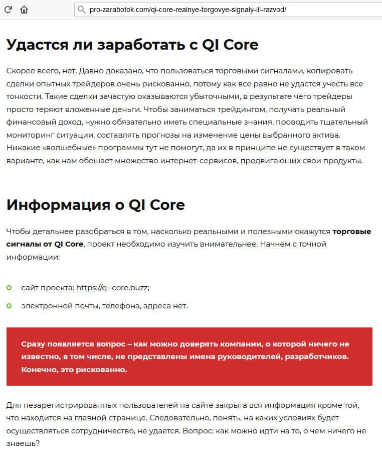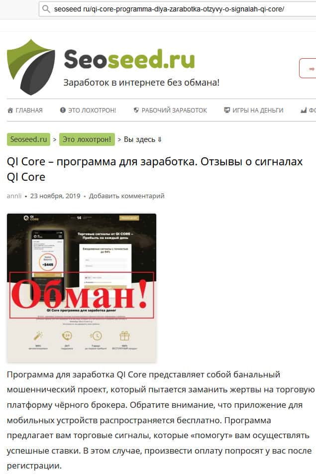 - Программа для заработка QI-Core - это обычный, мошеннический проект