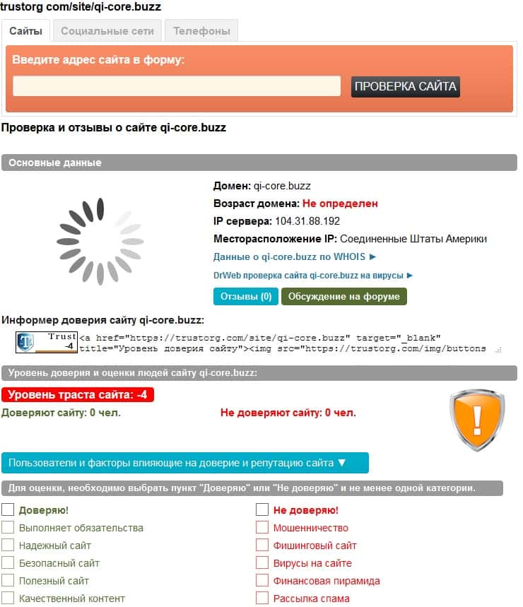 Есть такой известный оценочный портал в рунете, как "Доверие в Сети". На нем любой пользователь может поставить свою оценку работе той или иной компании. Так вот с него снесены все оценки работы мошенников QI-Core, чтобы у потенциальных жертв не возникло лишний сомнений.