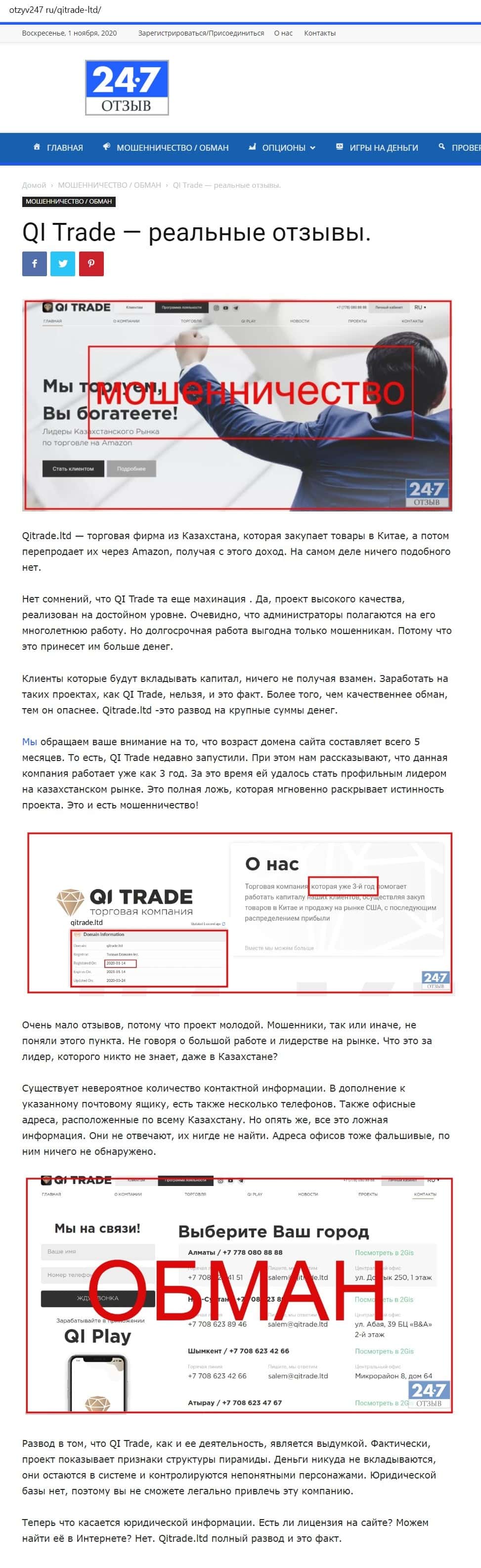 Сайт otzyv247 ru опубликовал материал, в котором говорит, что QITrade Ltd - жулики чистейшей воды. Это вытекает из исследования их подвального сайта.