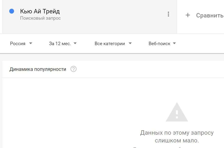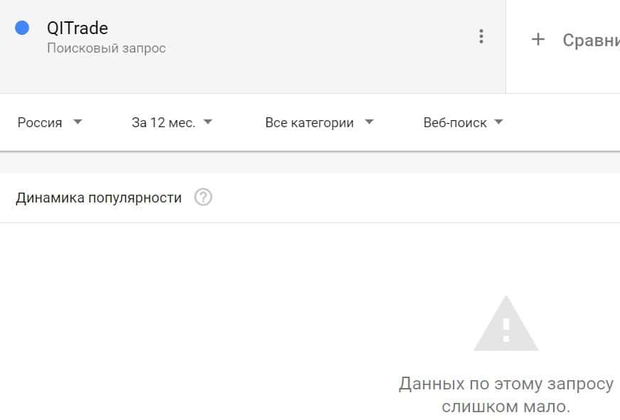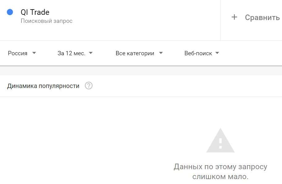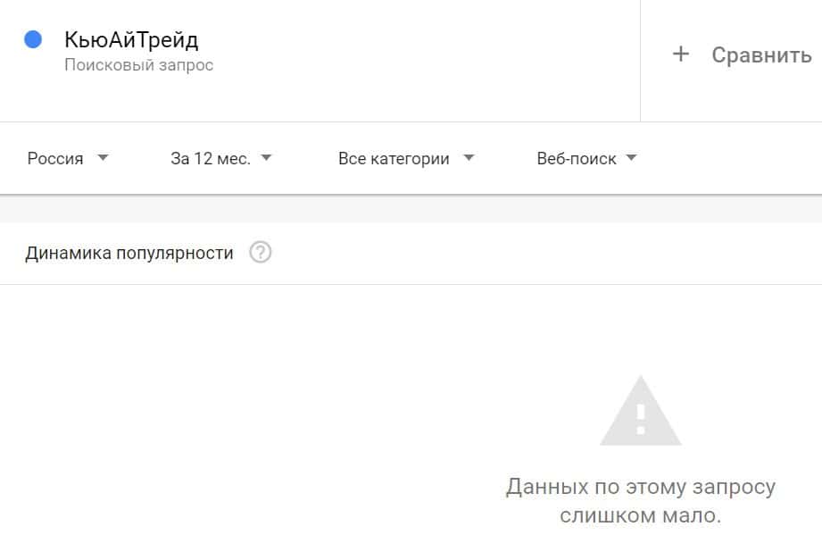 Посмотрим, насколько популярно название бренда "QITrade", написанное на английском языке. Данных по этому запросу нет, так как никто не искал этот бренд в Гугл.