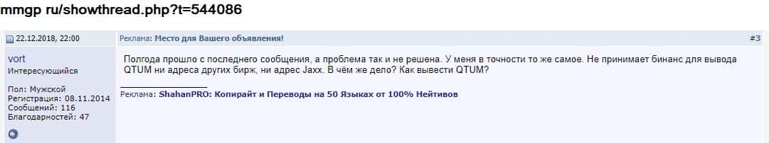 - Отзывы о мошенниках QTUM на разных сайтах
