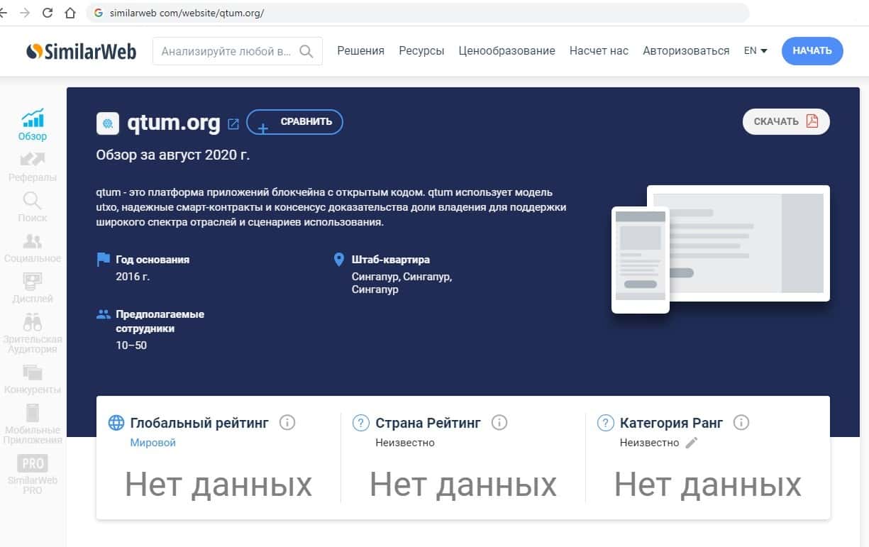 Источники трафика по сайту мошенников qtum org неизвестны. Сайт настолько топорно сделан, что по нему не показываются даже такие элементарные данные.