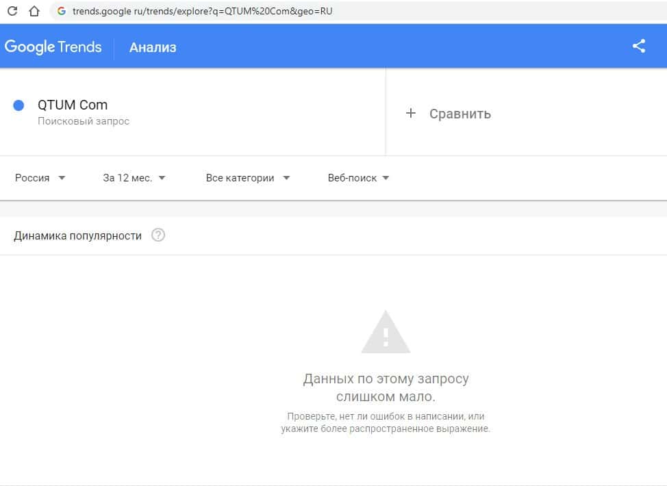 Второй запрос на английском языке в Гугл "QTUM Com" выдает только 0 показов в месяц. По такому запросу информацию никто о жуликах не ищет.