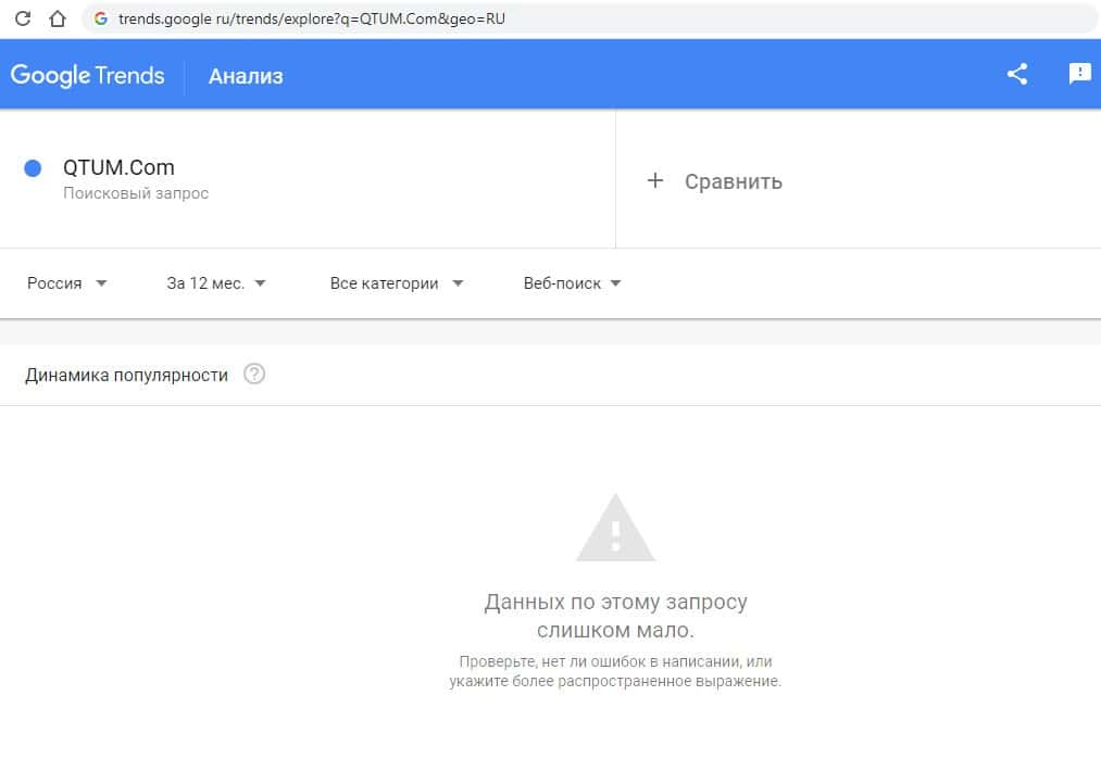 Похожий запрос на английском языке в Google "QTUM.Com" выдает 0 показов в месяц. По такому запросу информацию о жуликах никто не ищет.