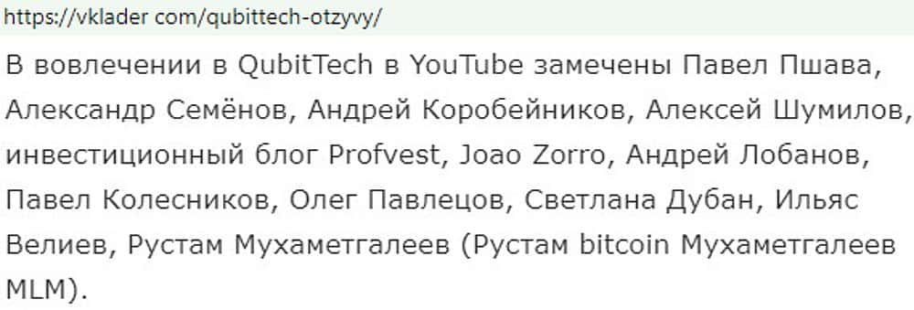 По полученной информации, недокомпанию QuBit Life рекламируют многие известные блогеры, которые попутно создают рекламу владельцам их союзнических лохотронщин.