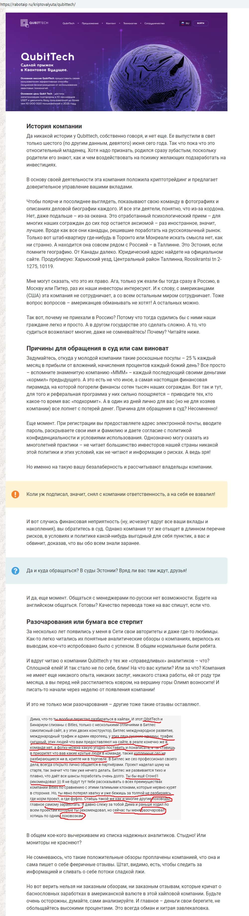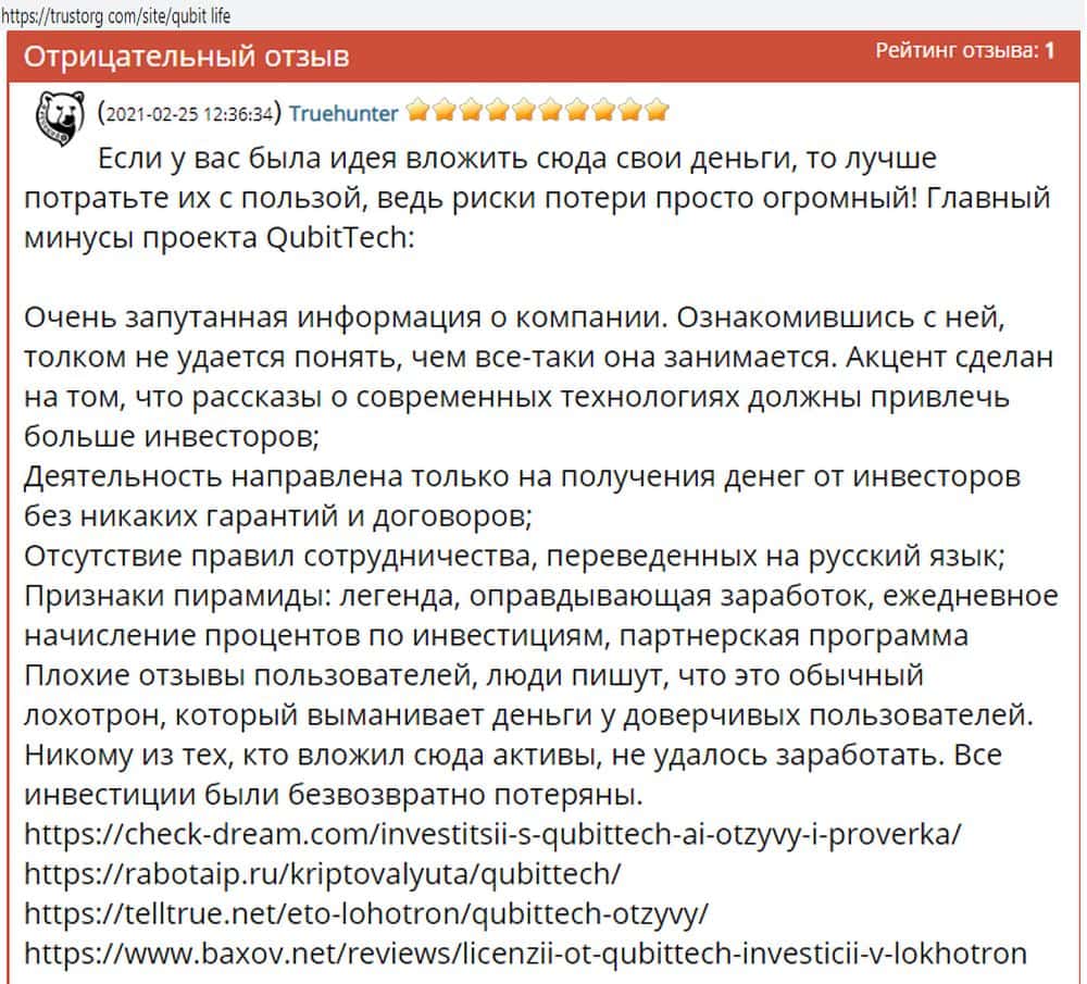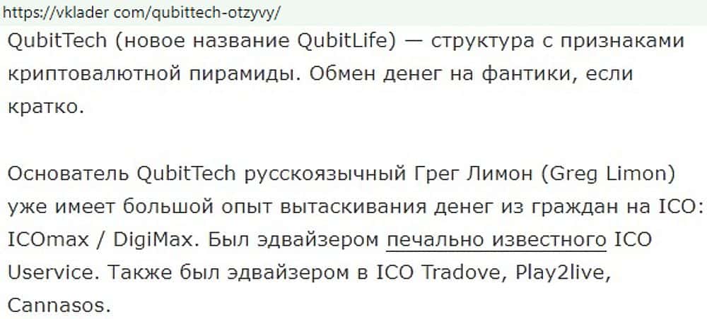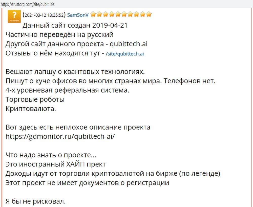 Обзоры других сайтов на шарашкину контору QuBit Life
