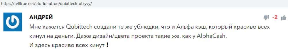 А вот один из пользователей сети Интернет рассказал, что шулера QuBit Life есть ни что иное, как бывший проект негодяев Альфа Кэш, поскольку дизайн и контент совпадает с ними.