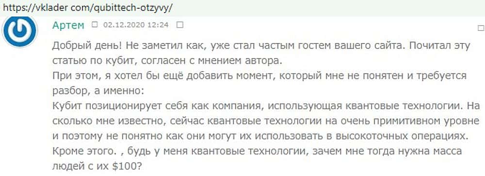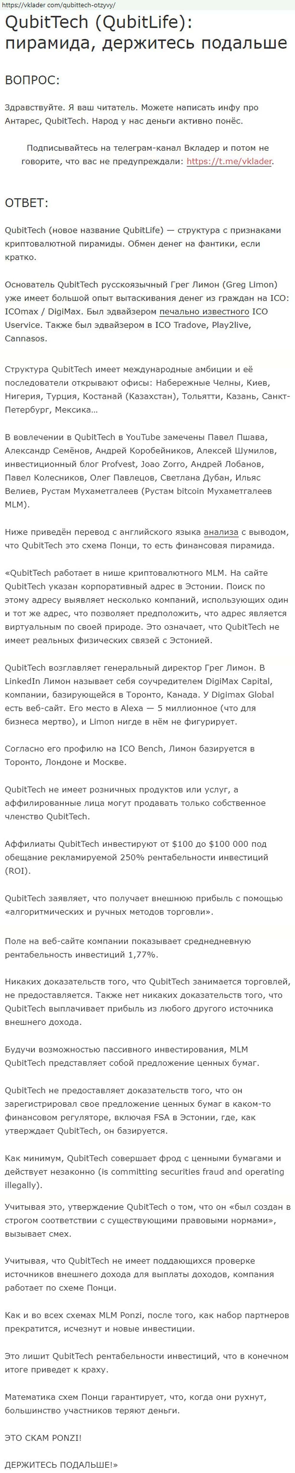 - Обзоры других сайтов на шарашкину контору QuBit Life