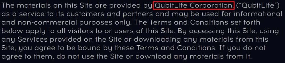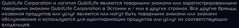 В так называемом клиентском соглашении аферистов КуБит Лайф указано, что их гнилой проект принадлежит некой мутной организации, которая называется QubitLife Corporation.