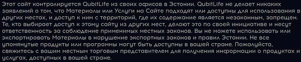 В списке перечисленных адресов офисов, который был указан выше, отсутствует адрес еще в одном государстве, которое не раз упоминают разводилы QuBit Life в своем соглашении: