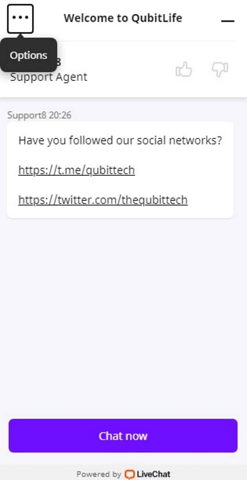 Также у прохвостов КуБит Лайф имеется якобы живой чат для связи со своими клиентами, однако он тоже в случае возникновения претензий замолчит и перестанет отвечать жертвам.