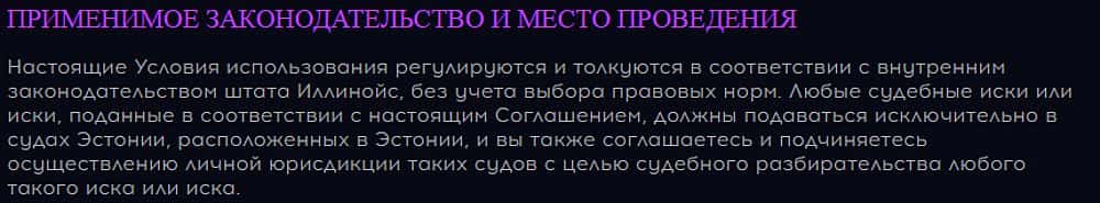 А вот еще одно противоречие. Почему-то соглашение мошенников QuBit Life действует по закону штата Иллинойс в США, однако сама контора, якобы зарегистрирована в Эстонии.