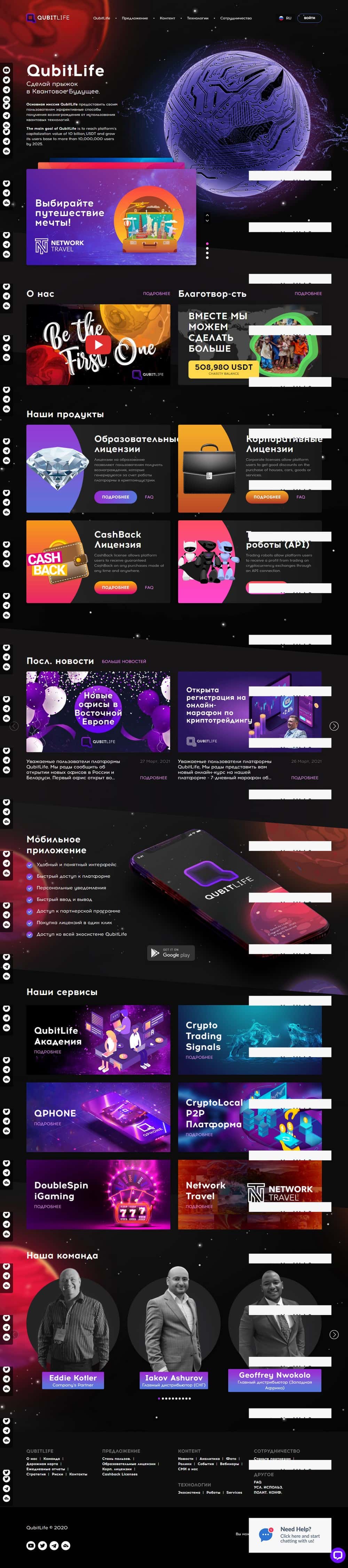 Сайт мошенников QuBit Life представляет собой обычный кривой шаблон. Видно, что они не особо вкладывались в его создание. То же касается и наполнения - одни пустые обещания.