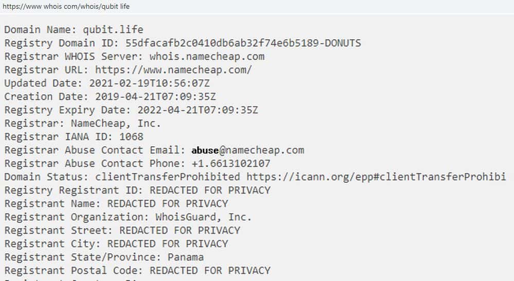 Согласно данным веб-ресурса хуиз ком, шарлатаны КуБит Лайф скрывают свои данные при помощи платных сервисов - а это уже говорит о том, что намерения у них далеко не честные.