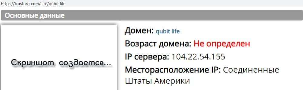 Онлайн-ресурс трасторг ком не может определить возраст лохотрона QuBit Life. Это значит, что они создали сайт-ловушку совсем недавно. Перед нами самый обычный хайп-однодневка.