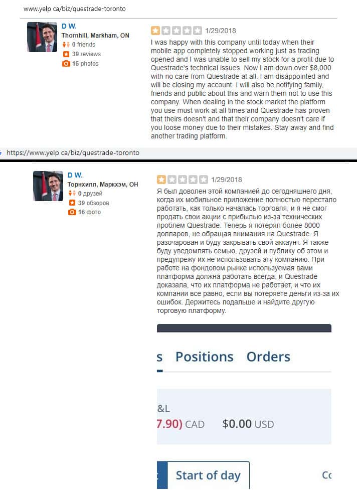 Еще один человек в шоке от происходящего, так как он торговал на рынке форекс через шарагу Questrade именно тогда, когда они закрыли систему из-за неполадок. Когда работа наладилась, тогда было поздно, так как отмена всех ордеров привела к полному сливу вложенных средств.