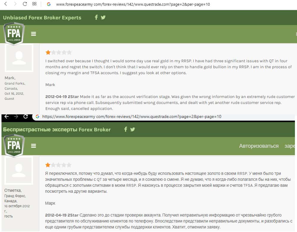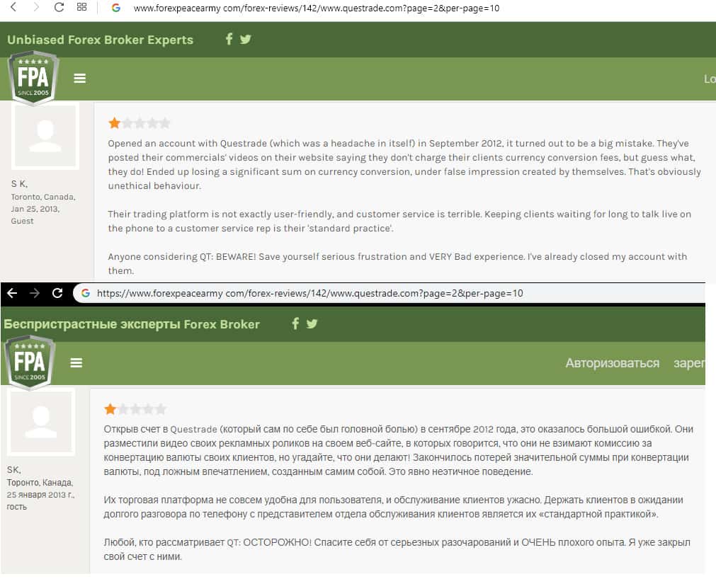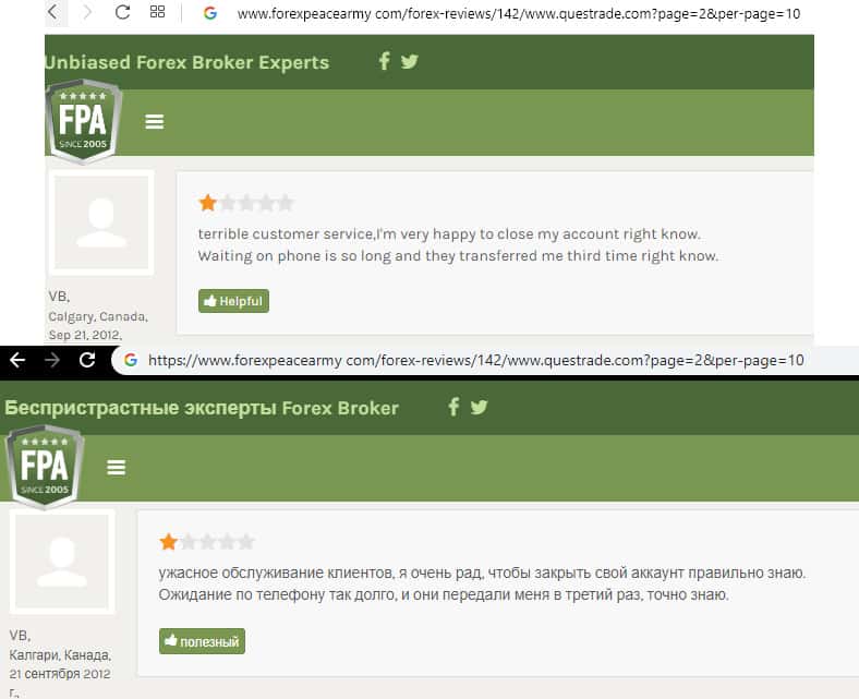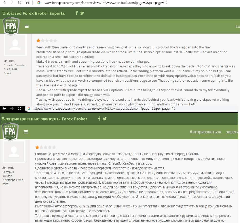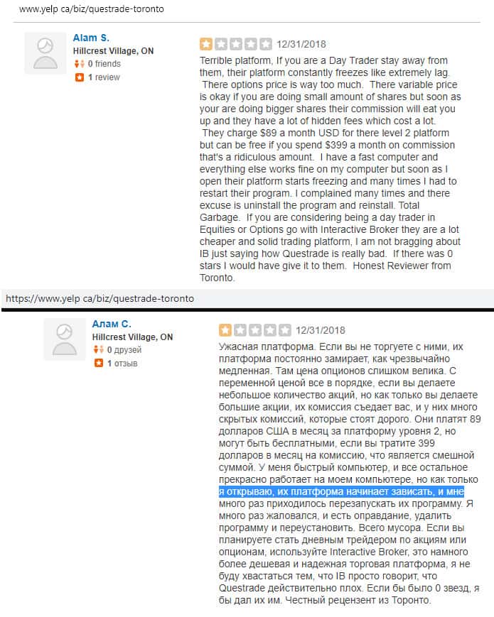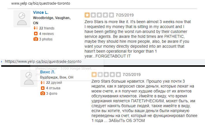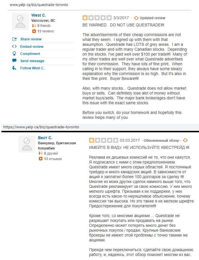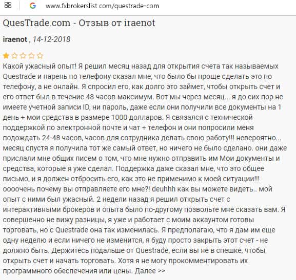 - Очередной негативный отзыв о брокере Questrade