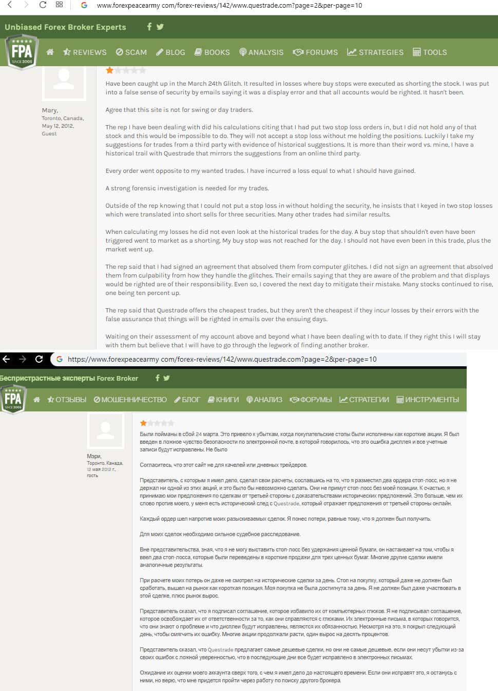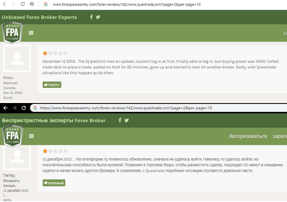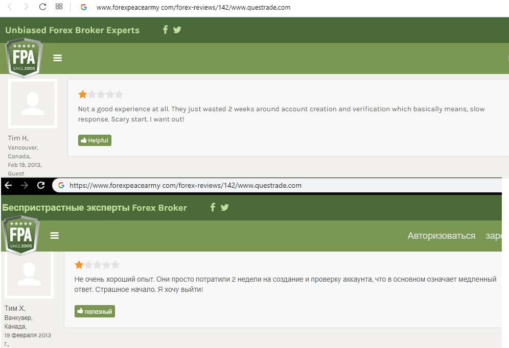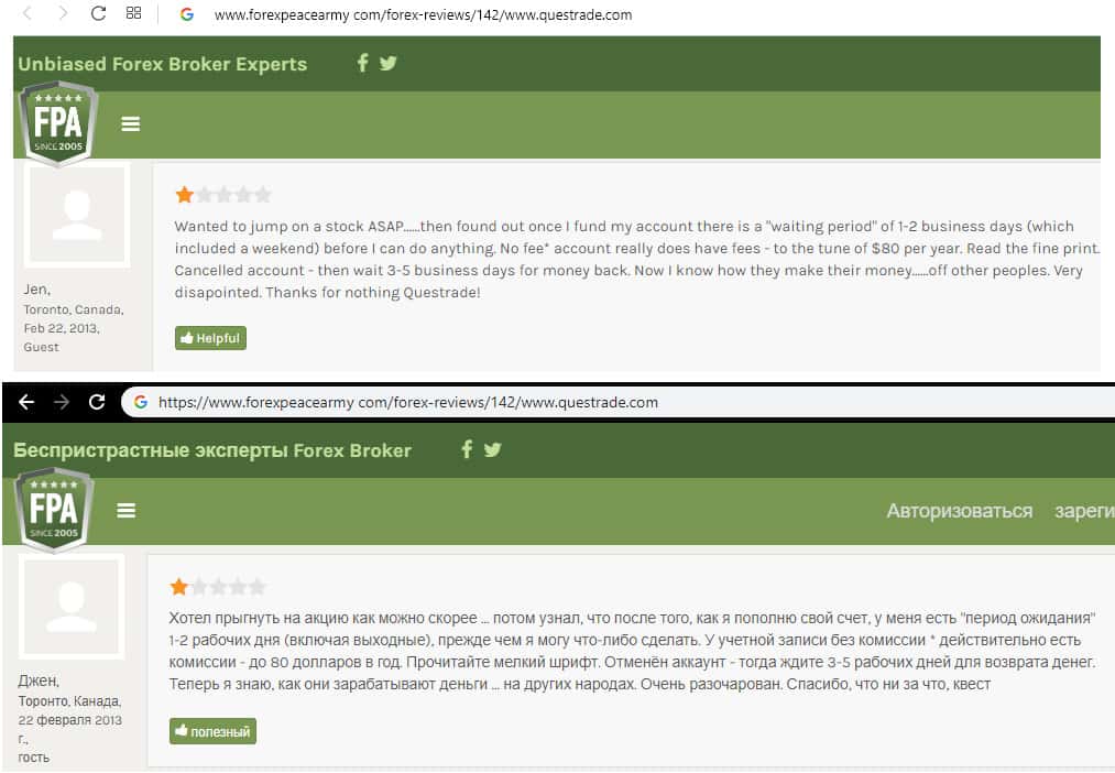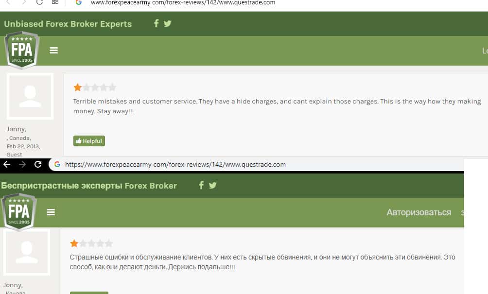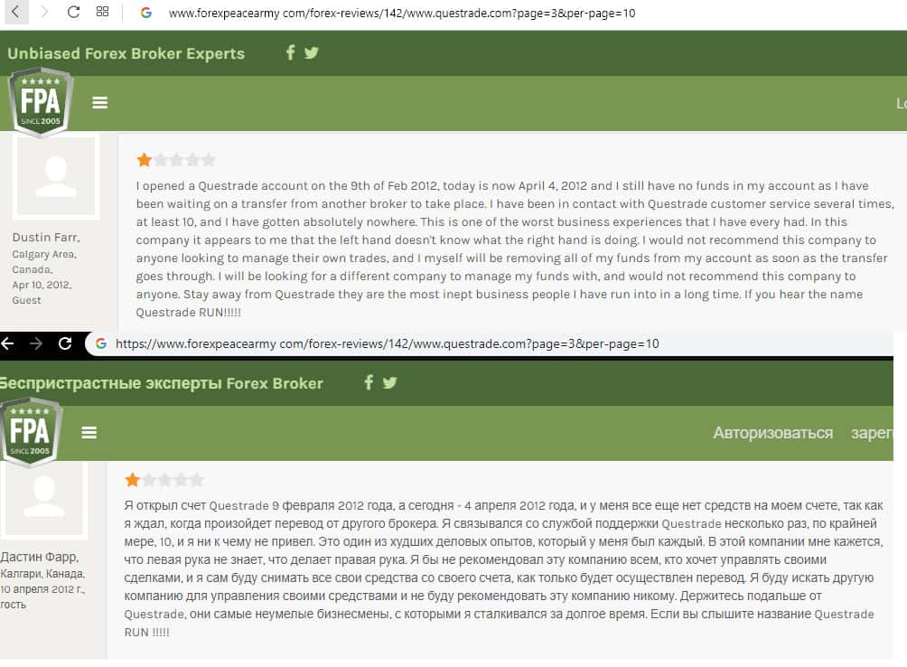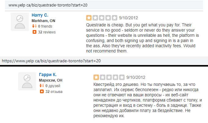 - Очередной негативный отзыв о брокере Questrade