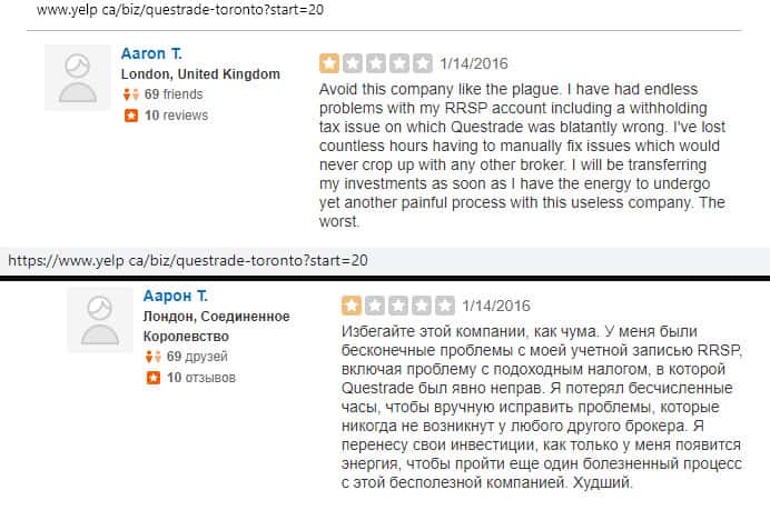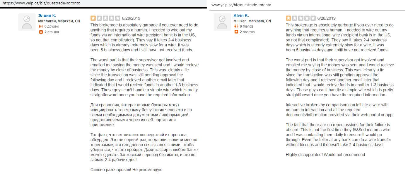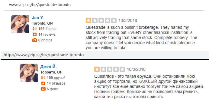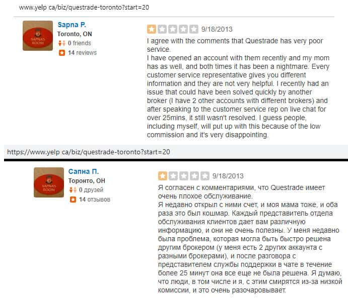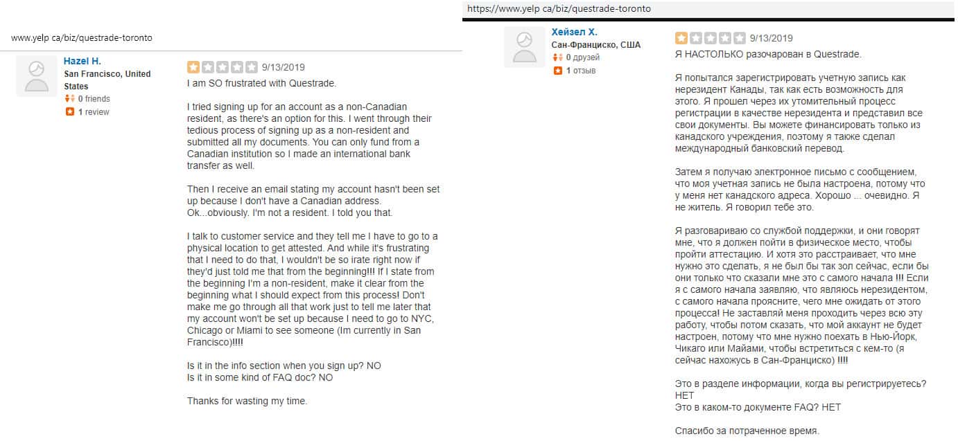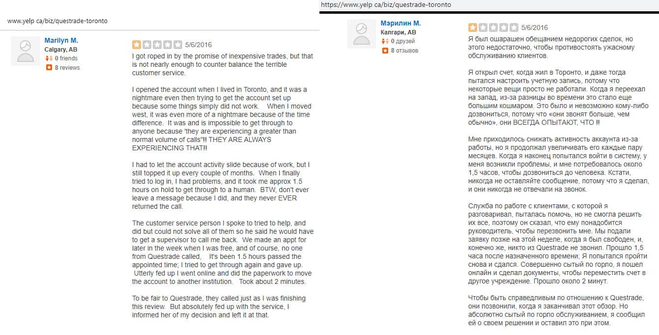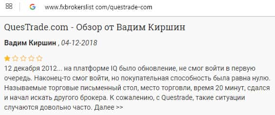 Очередной негативный отзыв о брокере Questrade