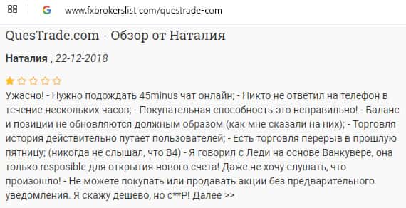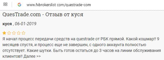 - Негативный отзыв о работе конторы Questrade