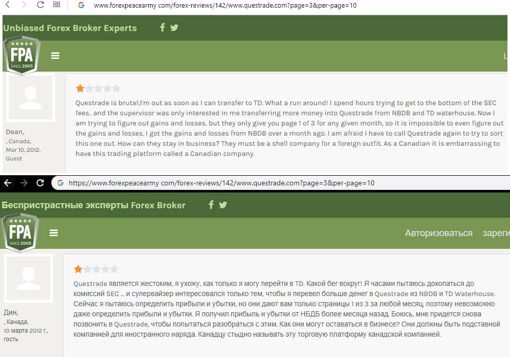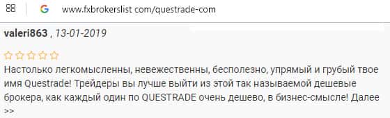 - Отзыв о коварных мошенниках из лохотрона Questrade