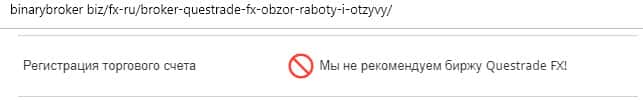 Авторитетный ресурс не рекомендует лохотрон Куес Трейд