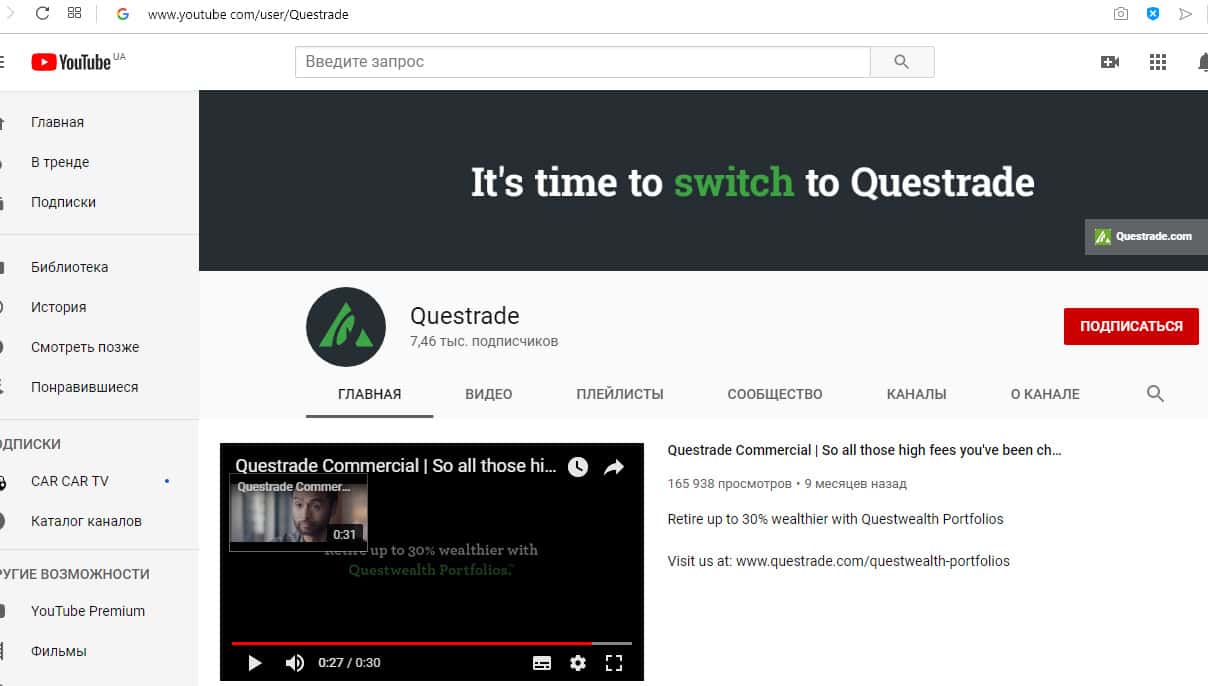 - канал в Ютуб youtube com/user/Questrade