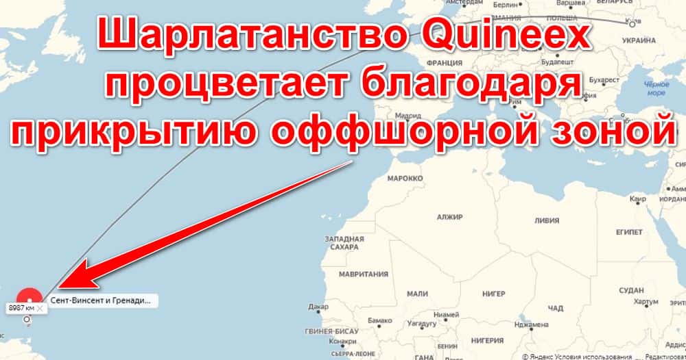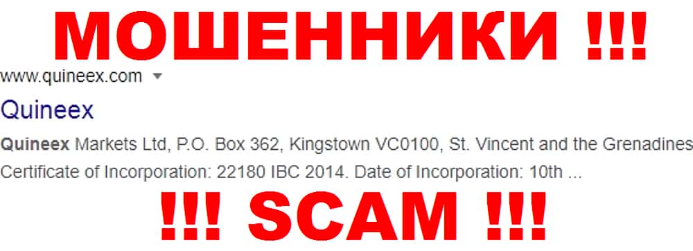 Каталы Quineex чувствуют себя безнаказанно потому, что их поганая конторка разводящая честной народ находится в оффшорном государстве. Это усложняет предъявление претензий и исков липовому псевдоброкеру Quineex, которого можно найти по адресу: P.O. Box 362, Kingstown VC0100, St. Vincent and the Grenadines.