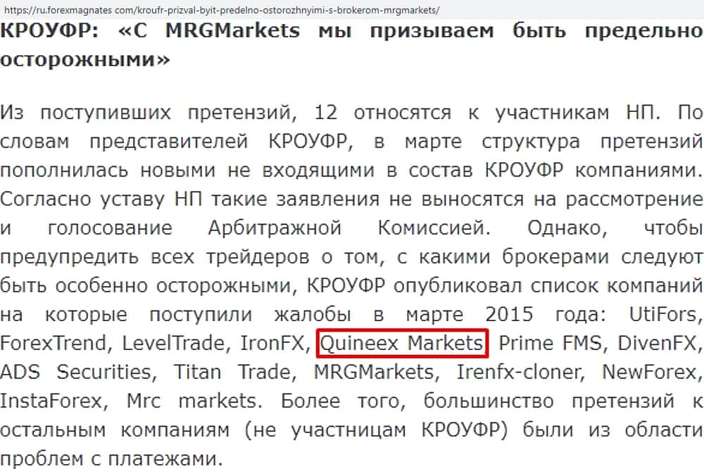 Источники материалов, которые были использованы при написании статьи о дутом брокере Quineex