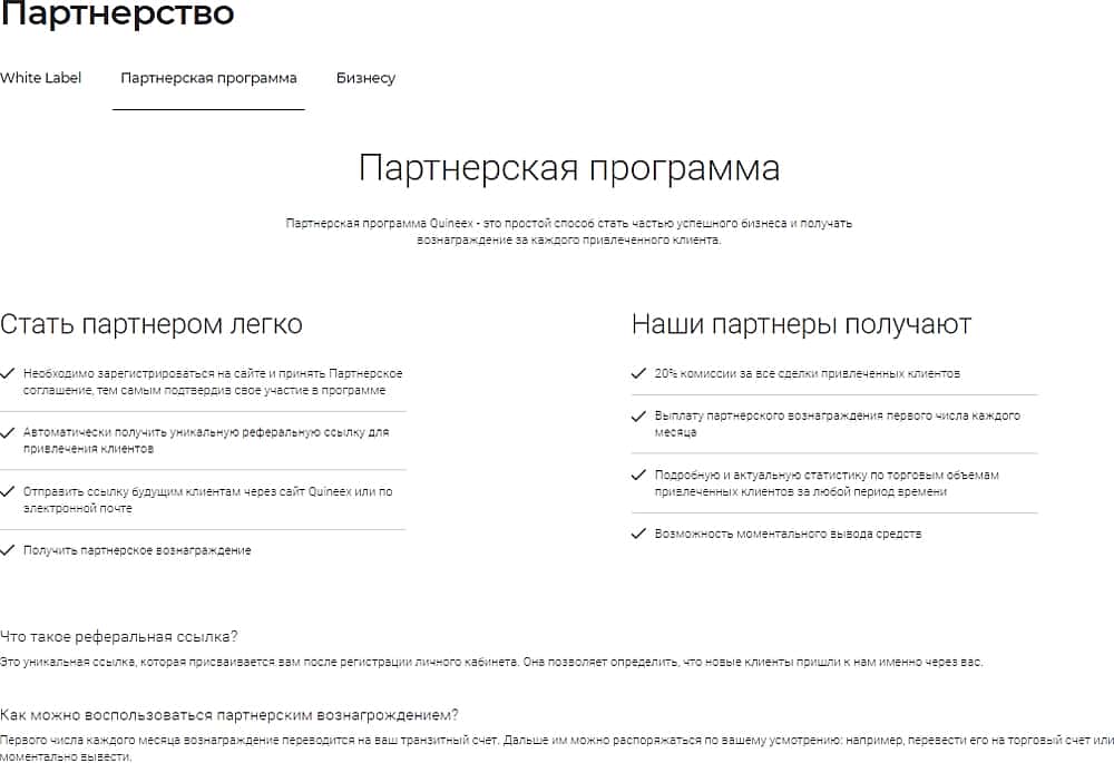 Для сотрудничества и развития своей преступной сети, проходимцы Quineex разработали несколько партнерских программ. Одна из них - это создание новых липовых конторок, вроде своей. Получается, что нужно просто зарегистрироваться как юридическое лицо и придумать название лохотрона, а обо всем остальном позаботятся махинаторы Quineex.