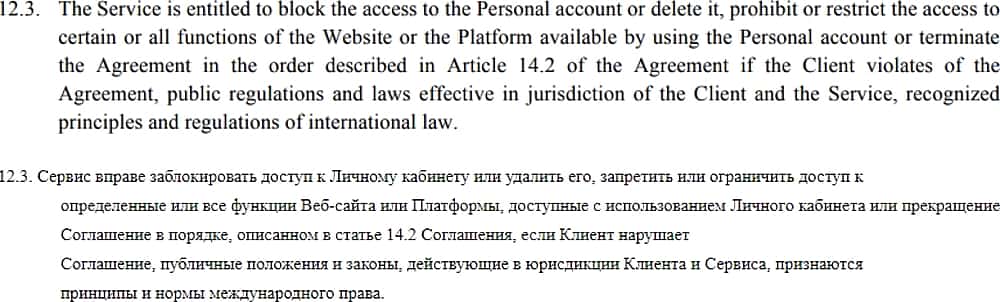 Аналогичным образом, форекс-разводилы могут и вовсе заблокировать, и удалить аккаунт, если им покажется, что трейдер что-то нарушает. А ведь подобные пункты необходимо изучать. Мошенники Куинеекс посчитали, что в случае англоязычного варианта псевдосоглашения, будет большим поток случайных или невнимательных клиентов.