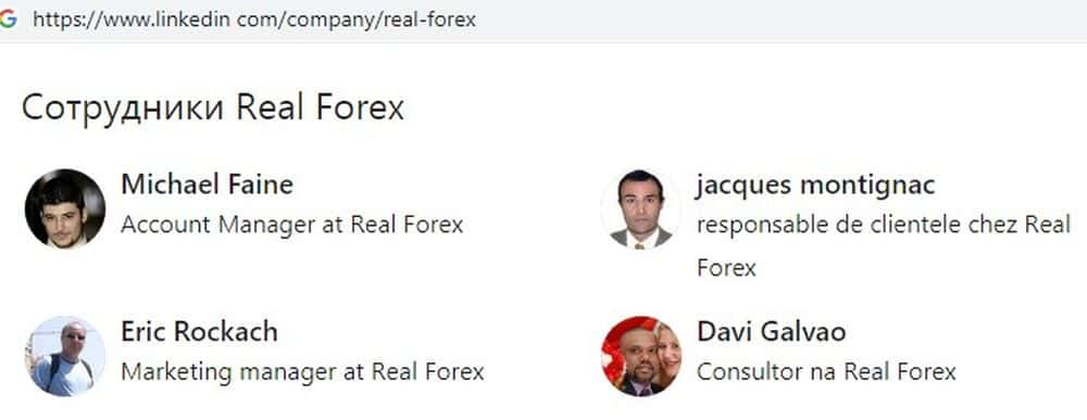 О руководстве конторы Real Forex информации нет. Finocorp Ltd вроде предоставляет данные о генеральном директоре, но - что совсем странно - на арабском языке. При том, что сайты обоих контор частично заблокированы, информацию о руководстве достать невозможно. Сомнений о том, что Реал Форекс мошенники не остается. Известные сотрудники: