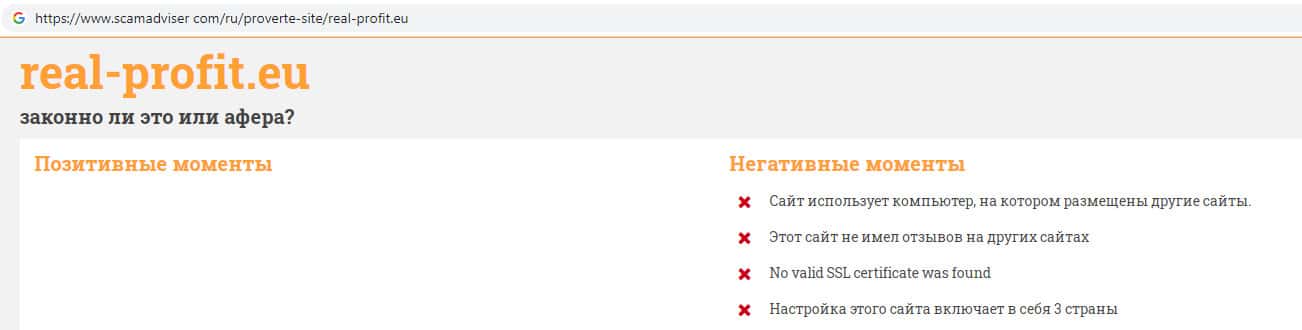 - Пользовательских отзывов о деятельности компании Real-Profit Eu во всемирной паутине не обнаружено