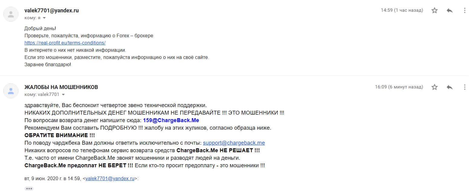 - Контактная информация мошеннической организации Real-Profit Eu