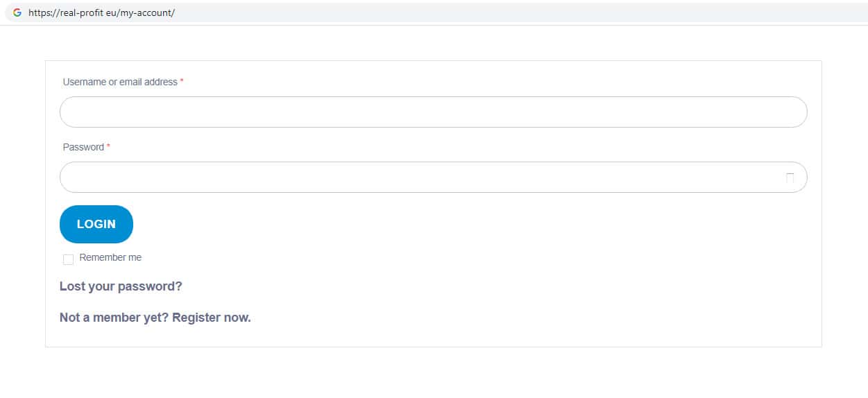 Ваши личные данные на сайте жульнической организации Real-Profit Eu никак не защищены, поскольку для входа в кабинет необходимо указать только адрес электронной почты и пароль, которые очень легко рассекретить. Ваши личные данные для входа в кабинет всегда хранятся на сайте аферистов Реал Профит, которые могут сами слить Ваши денежные средства.