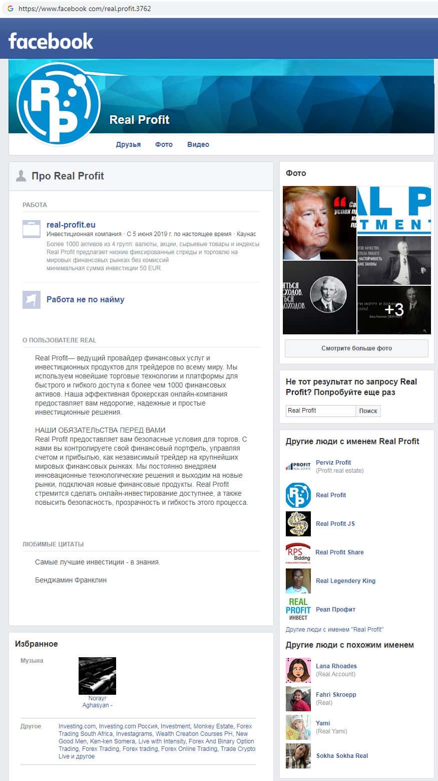 - Информации о руководстве мошеннической организации Реал Профит не обнаружено
