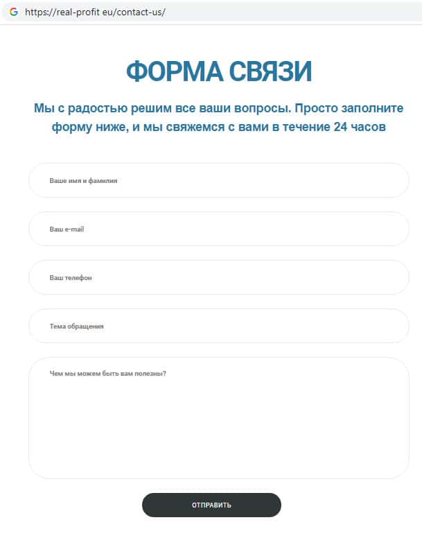 Контактная информация мошеннической организации Real-Profit Eu