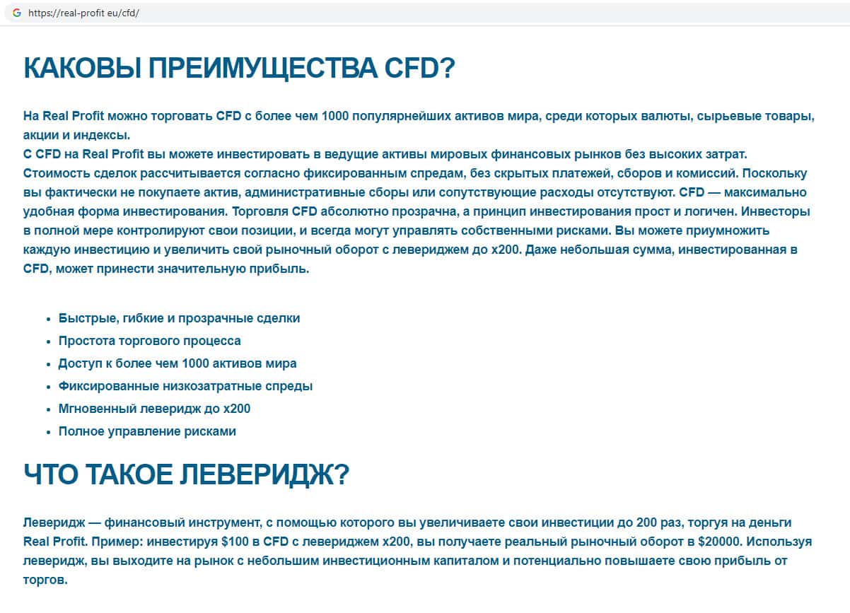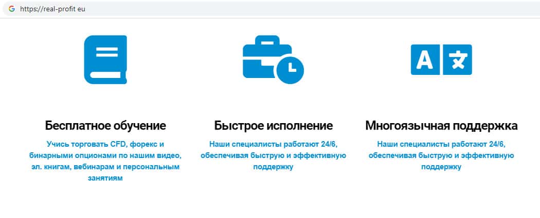 - Жулики Real-Profit Eu считают свой фейковый интернет-ресурс многофункциональным