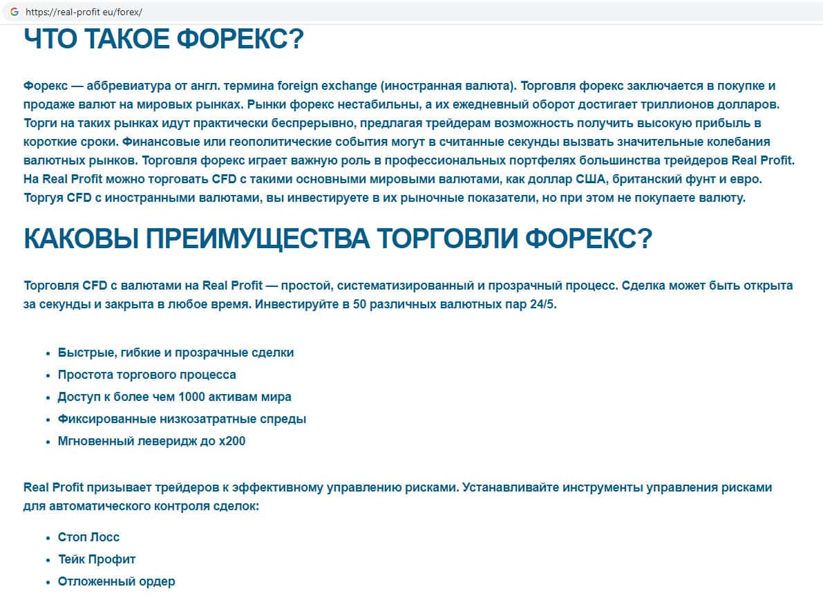Скам-контора Real-Profit Eu не имеет никакого отношения к международному финансовому рынку