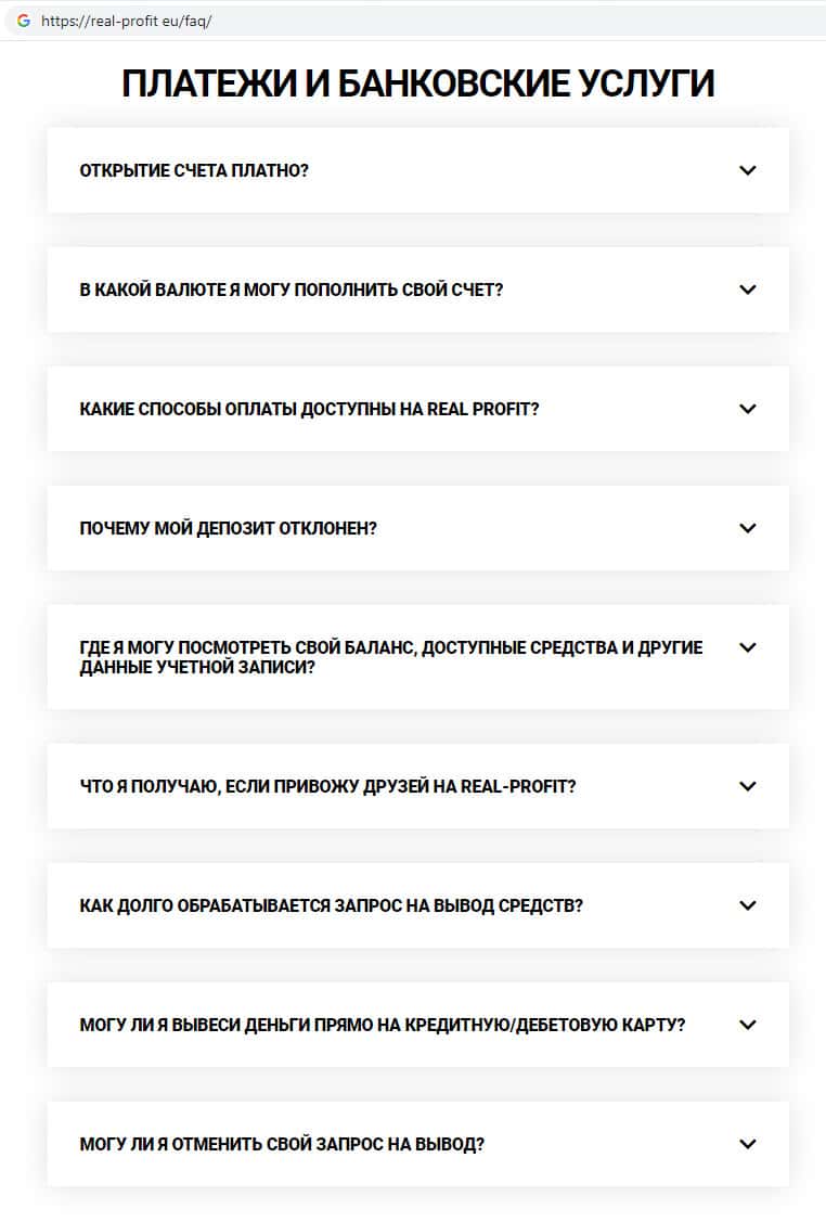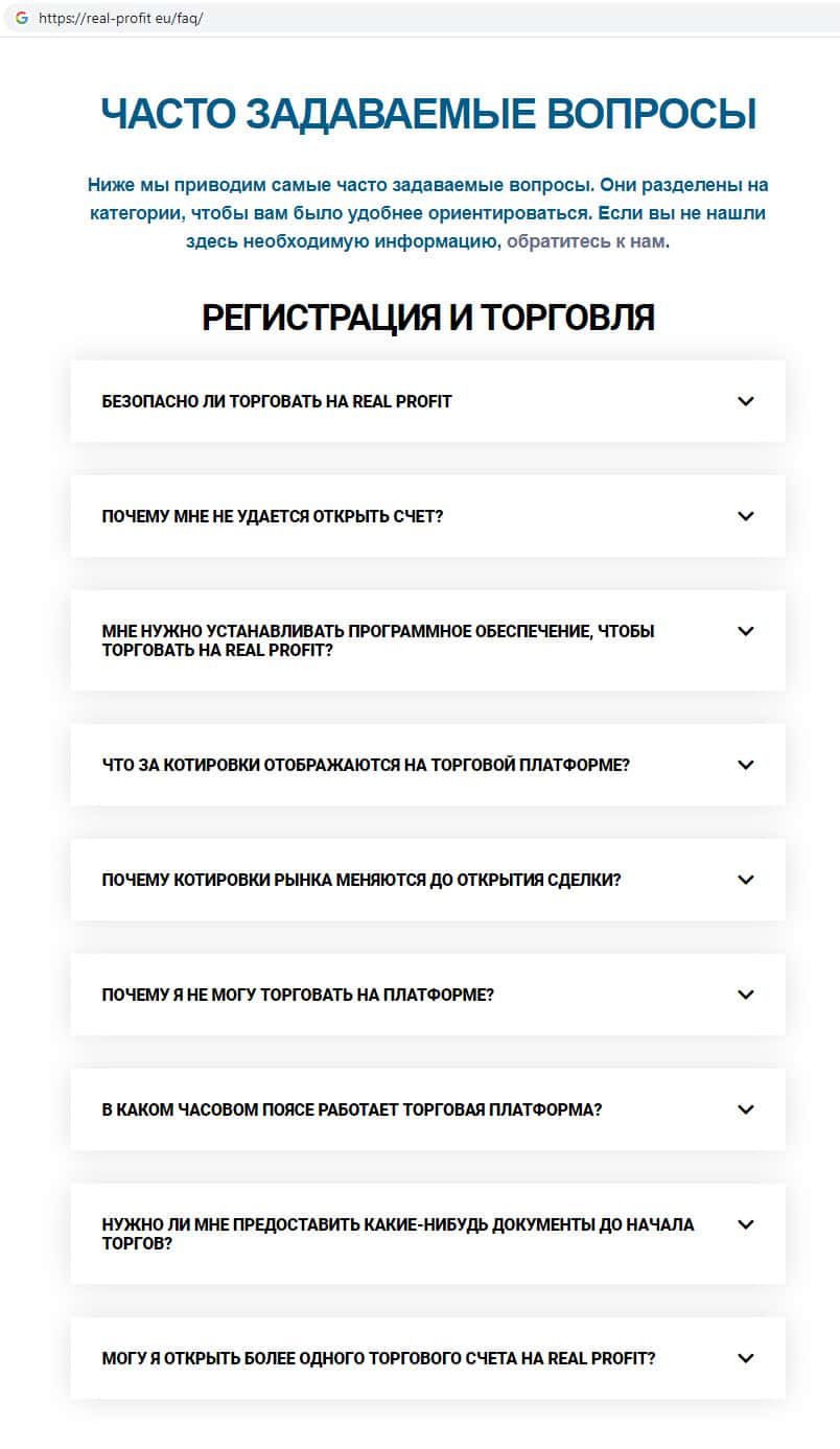 - Аферисты Реал Профит заранее подготовили ответы на якобы часто задаваемые вопросы