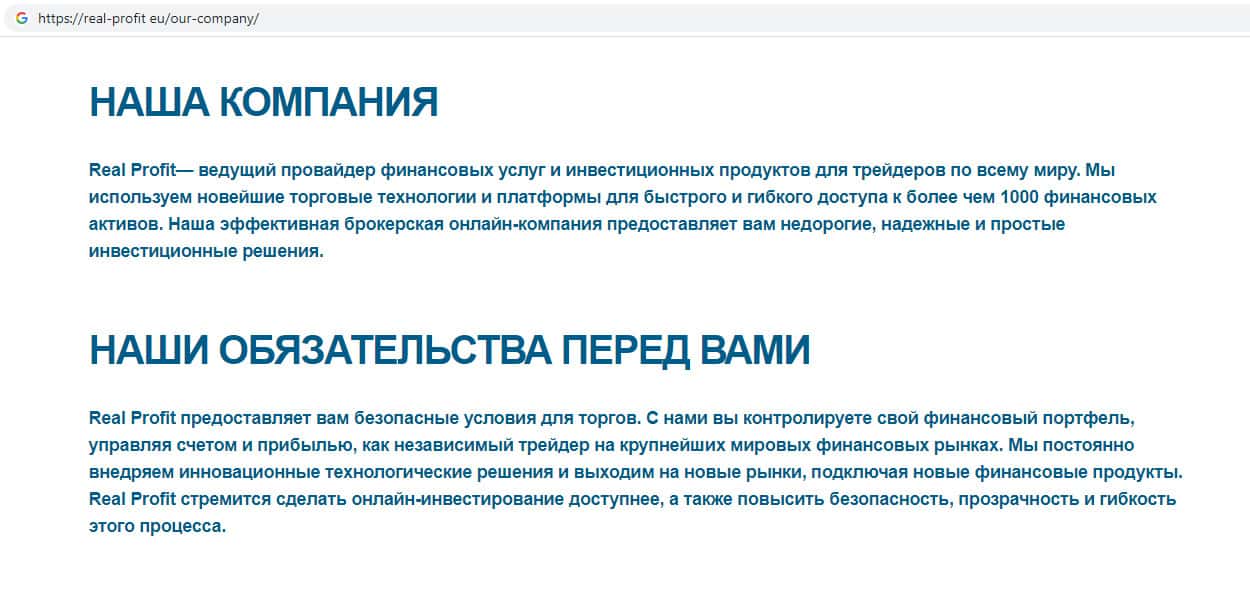 - Обзор официального интернет-ресурса скам-организации Реал Профит