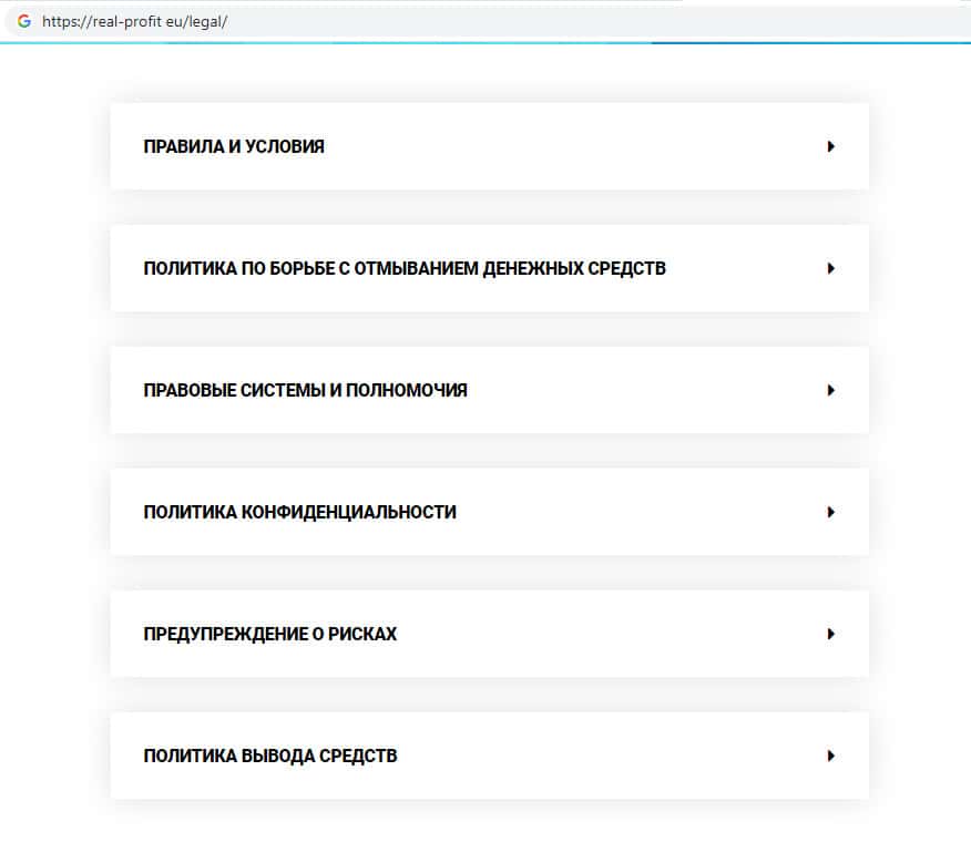 - Какие документы предоставляют аферисты Real-Profit Eu на своем официальном сайте?
