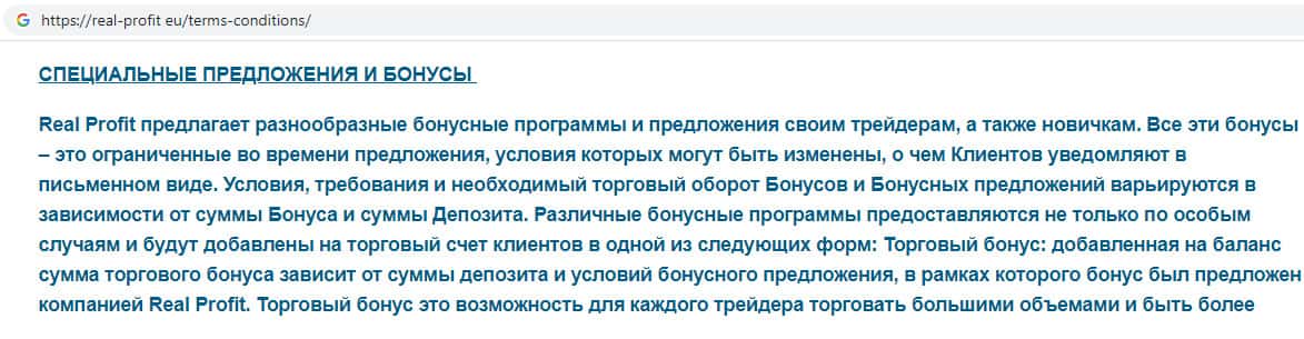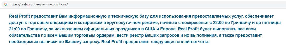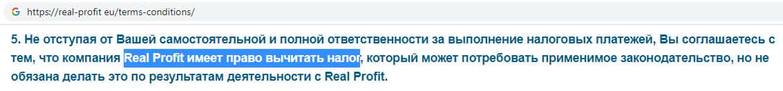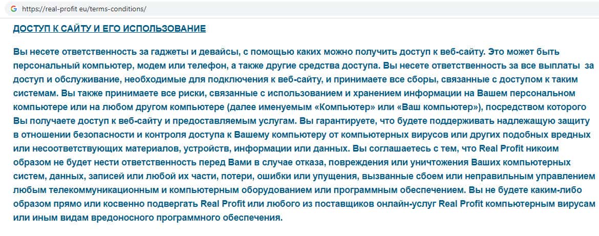 - Пользовательское соглашение жульнической конторы Реал Профит