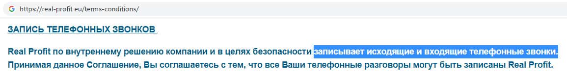 Если Вам позвонили жулики Real-Profit Eu и Вы взяли трубку, рекомендуем прекратить с ними разговаривать по той причине, что аферисты все телефонные разговоры записывают на диктофон. Таким образом мошенники решили себя подстраховать. Из этого следует сделать вывод о том, что доверять скам-компании Реал Профит не стоит !!