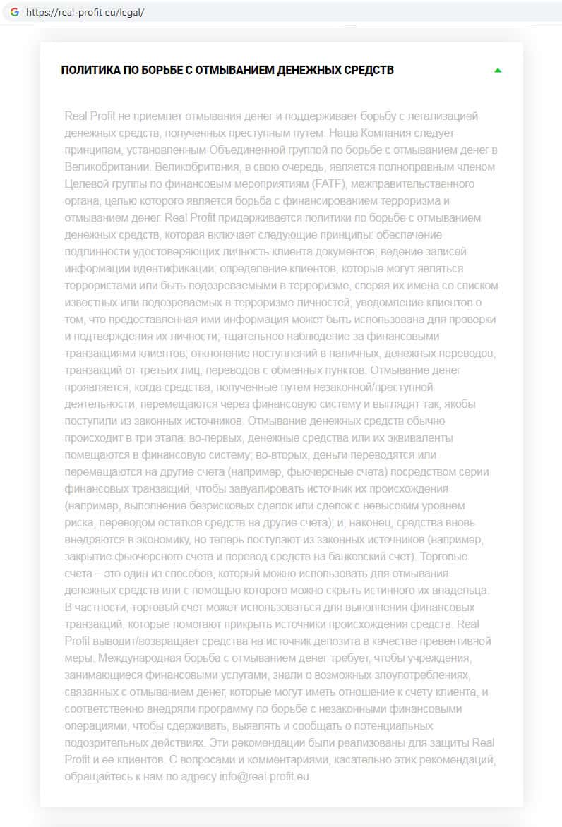 - Шулера Real-Profit Eu рассказывают сказки о том, что ведут борьбу с отмыванием денежных средств